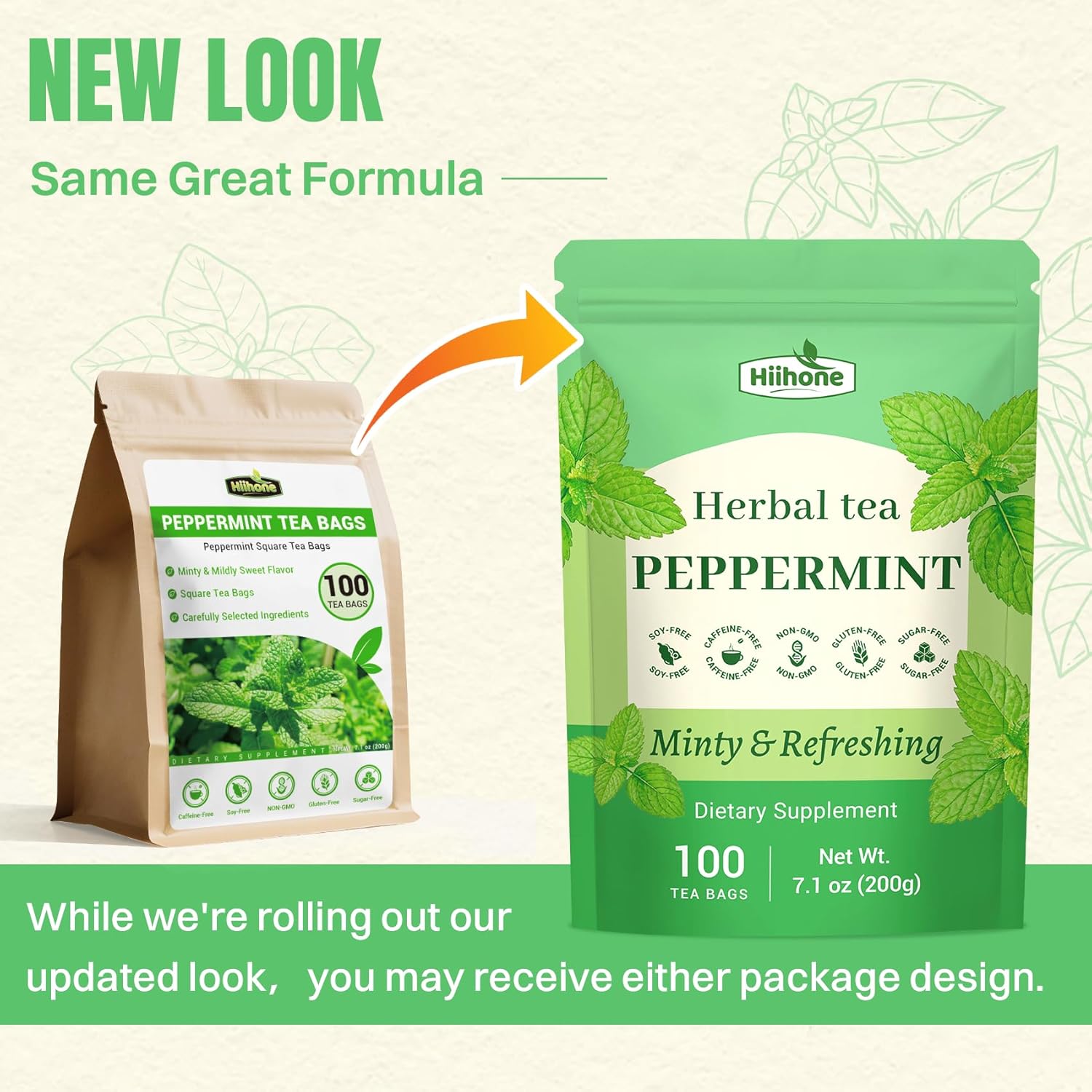 Hiihone Peppermint Tea Bags 100 Count – Pure Peppermint Mint Tea, Caffeine-Free Herbal Tea, Minty & Refreshing, Non-GMO, Soothing & Digestive Support